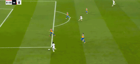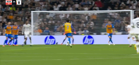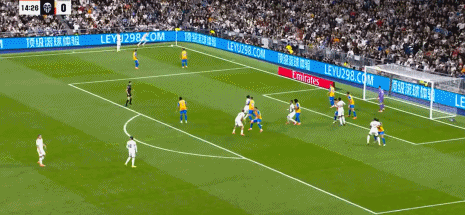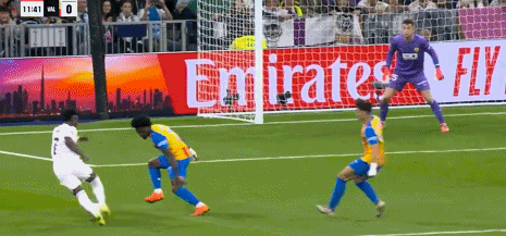 第44分钟,巴尔韦德助攻,贝林厄姆兜射入死角,皇马3-0